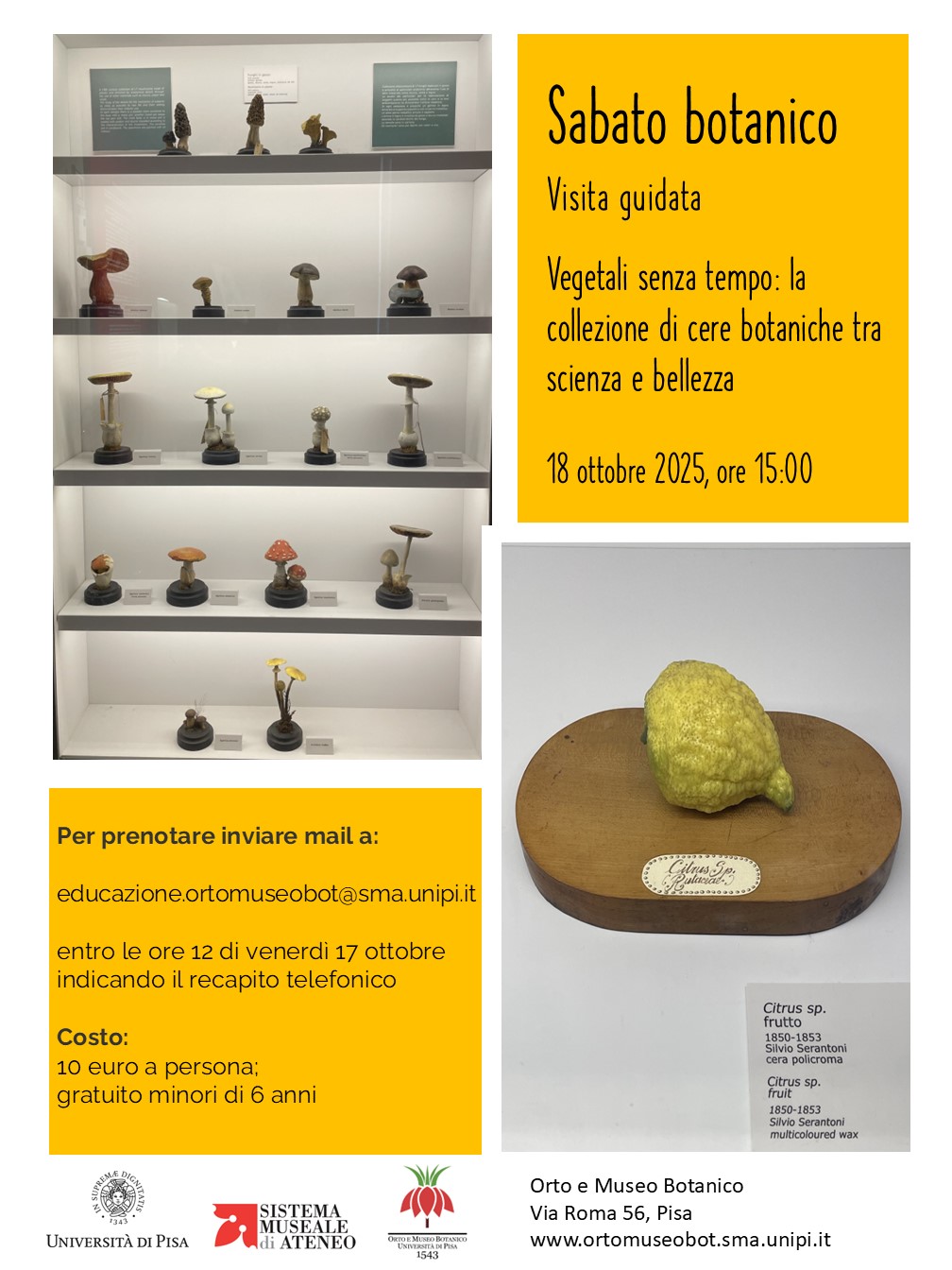 Prenotazione obbligatoria da effettuare entro le ore 12:00 di giovedì 17 ottobre scrivendo a: educazione.ortomuseobot@sma.unipi.it. Nella mail è necessario fornire un recapito telefonico.